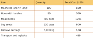 To support farmers’ autonomy, CJLP distributed essential agricultural tools and seeds: